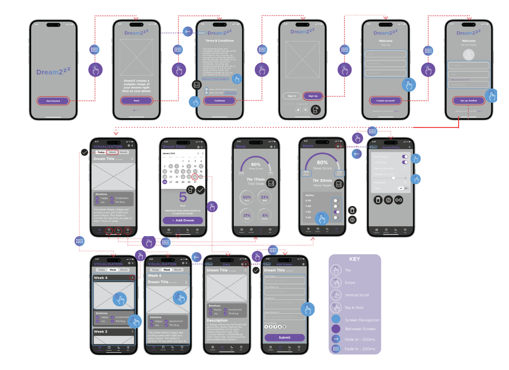 Throughout research, both secondary and primary it was clear that dreams are thought about a lot for people during the day and this can have a negative impact on their day. Allowing people to be able to create a place where these dreams can be visualised as well as documented so that the user can holistically review their dreams.